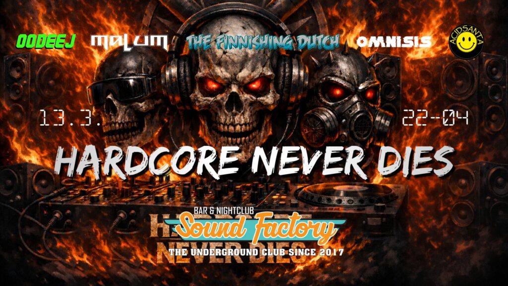Vierailevina esiintyjinä etelästä Malum ja Omnisis sekä viimeisimpänä kiinnityksenä iltaan Pyros & The Finnishing Dutch feat. Isimaharajaz. Kajjjaanin lippua pitävät korkealla AcidSanta ja Oodeej. Nyt ei oo mitään pehmeiden poikien hommia vaan kunnon core ilta.