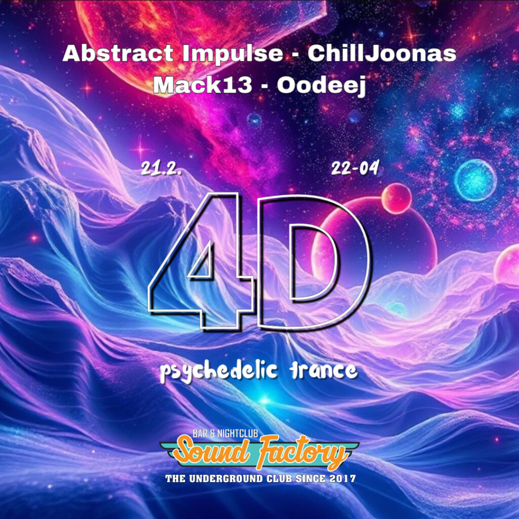Sound Factory järjestää lauantaina 21.2.2026 underground henkisen konemusiikki-illan psytrance teemalla. Mikäli tanssilattia kutsuu sinua on tässä tapahtumassa on luvassa kuusi tuntia erittäin tanssittavaa konemusiikkia.